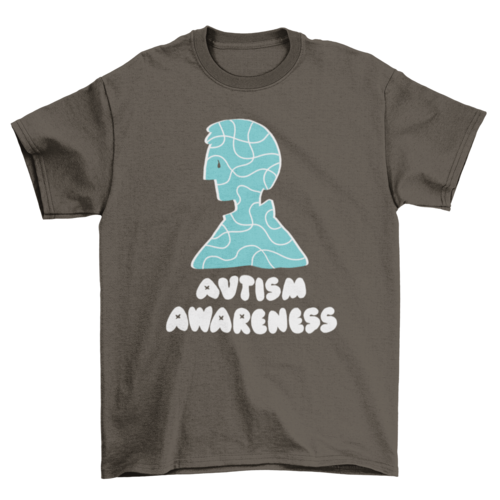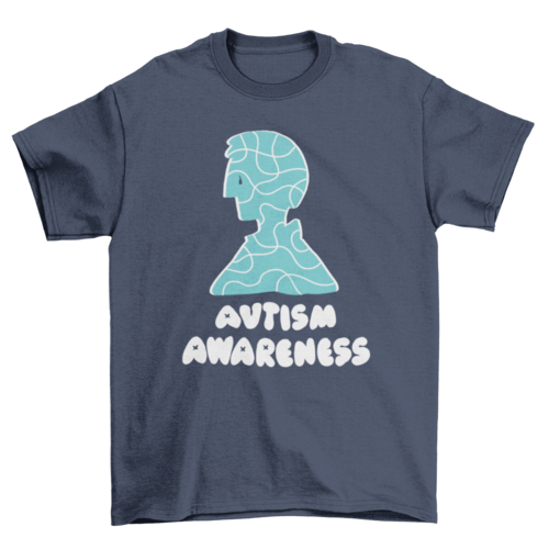 Support t-shirt design featuring a man silhouette made up of pieces and a quote saying AUTISM AWARENESS.